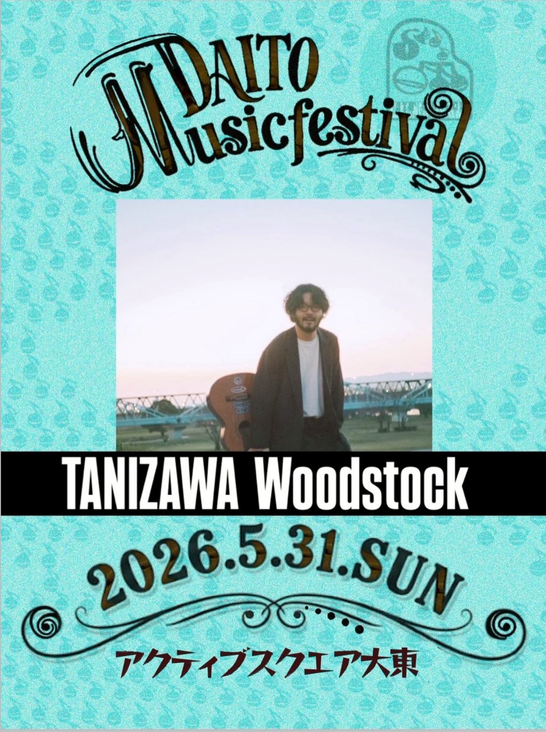 だいとう音楽祭JAZZ、第3弾アーティスト発表!谷澤ウッドストック氏が初出演!一度聴いたらヤミツキになる彼の弾き語り生ライブをお楽しみに。年間ライブ本数も最多かも!?チケットは近日発売!アーティストの追加発表もお見逃しなく!